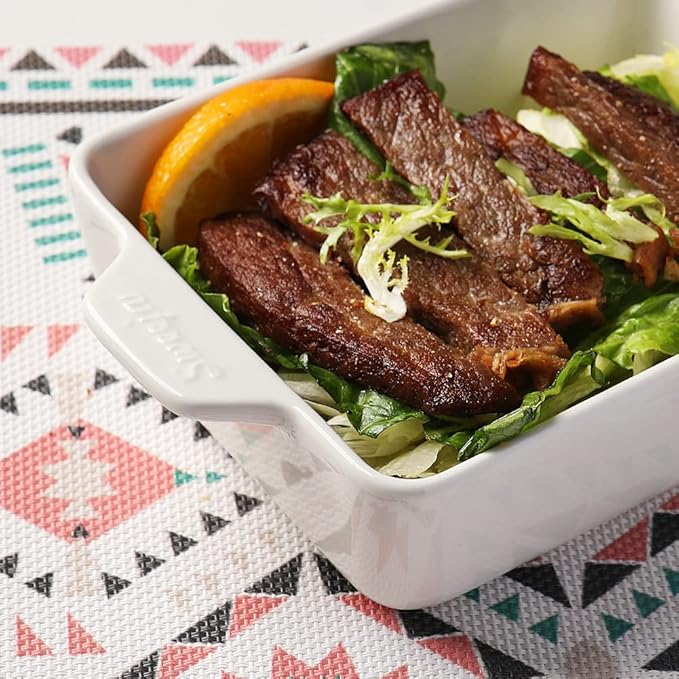 - 【Stylish Rectangular Baking Dish】The rectangular baking dish is equipped with a double handle design for easy food transport from the oven to the table. It is also a charming decoration in your kitchen and dining table which may impress your guests!