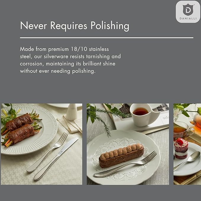 - Dishwasher Safe for Easy Care – Conveniently designed for busy households, this flatware set remains brilliantly polished and spotless after every dishwasher cycle.