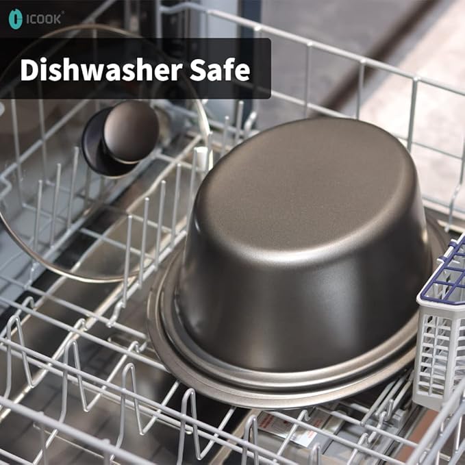 - [Tempered Glass Lid]Full-view Glass Lid with Cool Touch Handles for You to Monitor the Food When Cooking.Dishwasher Safe.