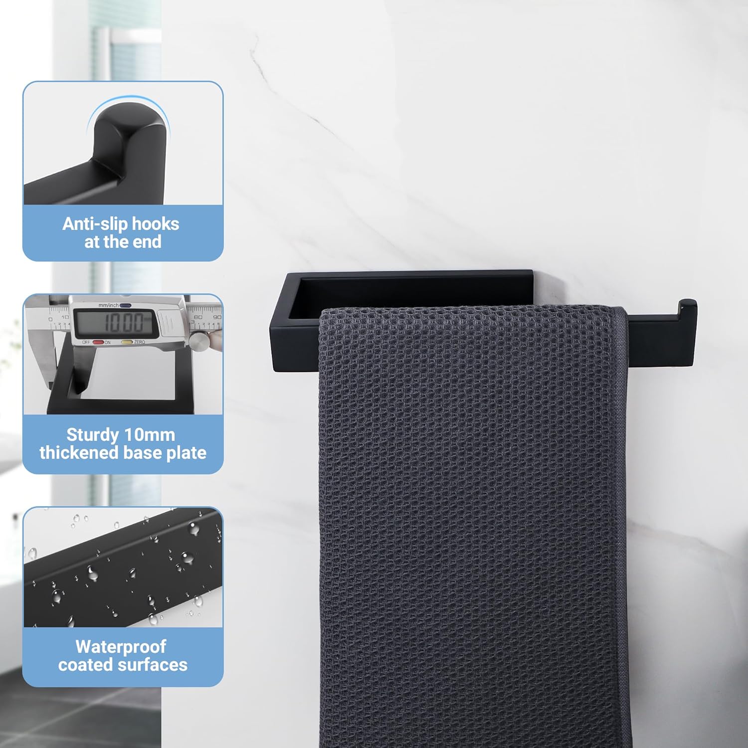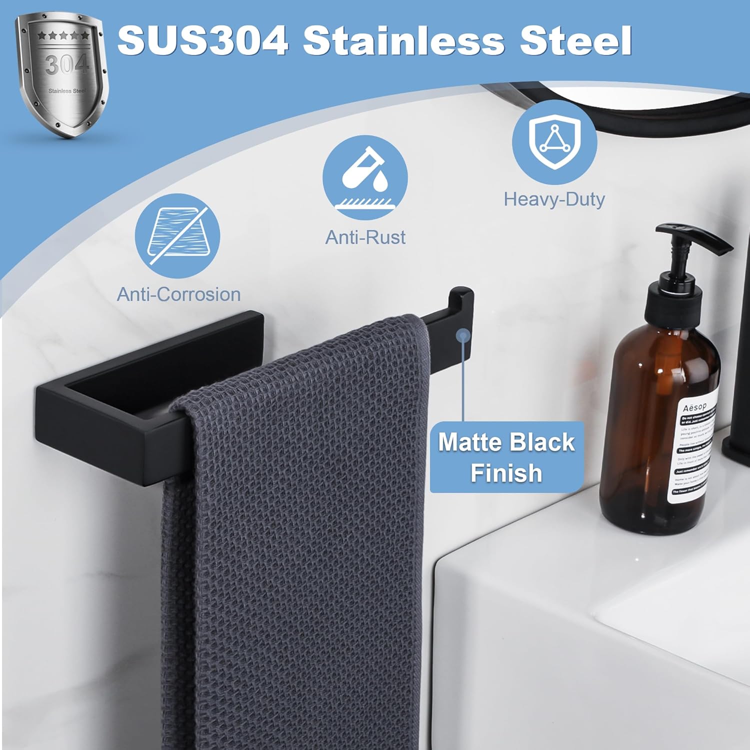 - DURABLE & RUSTPROOF MATERIAL - Most fixed hand towel rod for bathroom are easily deformed. Sayayo matte black hand towel holder is made of quality 304 stainless steel, with excellent strength and durability. With a matte black finish, a durable material resists daily scratches and tarnish.