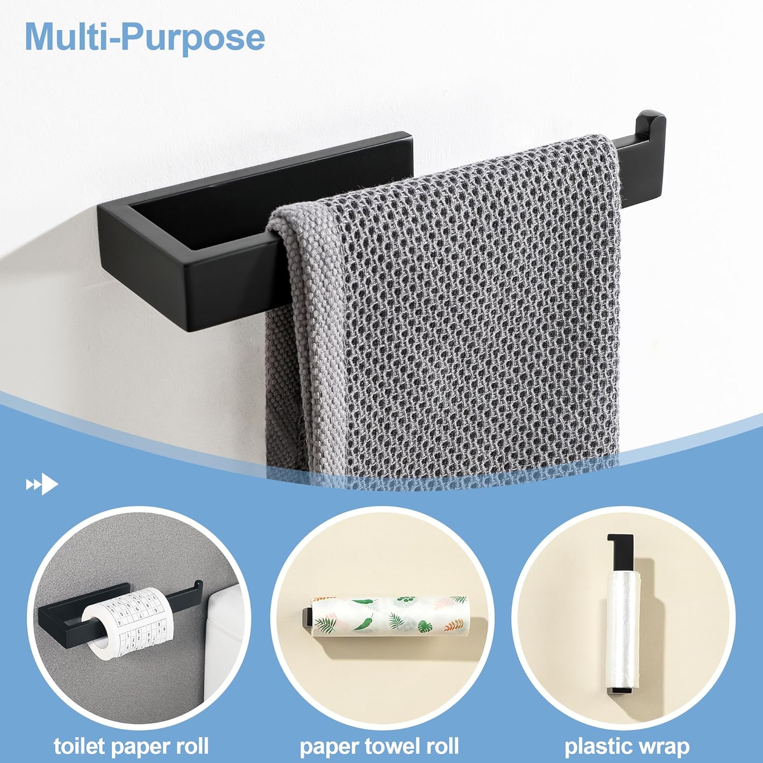 - WIDE APPLICATION - Perfect for shower, bathroom, kitchen, laundry room, cabinets, wash basins, etc. Please note, the matte black towel bar can only be fixed by drilling, not by pasting.