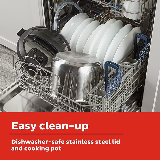 - QUICK AND EASY CLEAN UP: Finger-print resistant sides with dishwasher-safe lid, inner pot, and accessories.