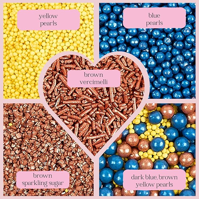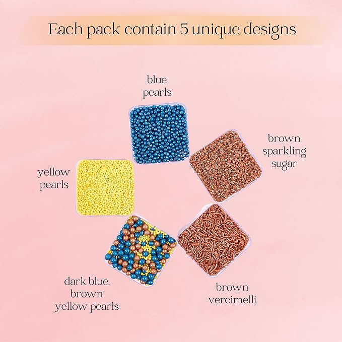 - Assorted Sprinkle Pack (Set of 5) – Includes a vibrant Graduation Day Mix featuring Yellow, Copper, and Navy Blue tones perfect for festive baking and celebrations.