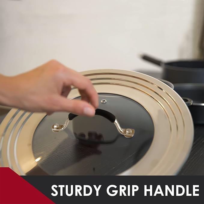 Stainless Steel Universal Lid for Pots, Pans and Skillets - Fits 7" to 12" Pot and Pans - Tempered Glass with Stainless Steel Rim Replacement Frying Pan Cover and Cast Iron Skillet Lid