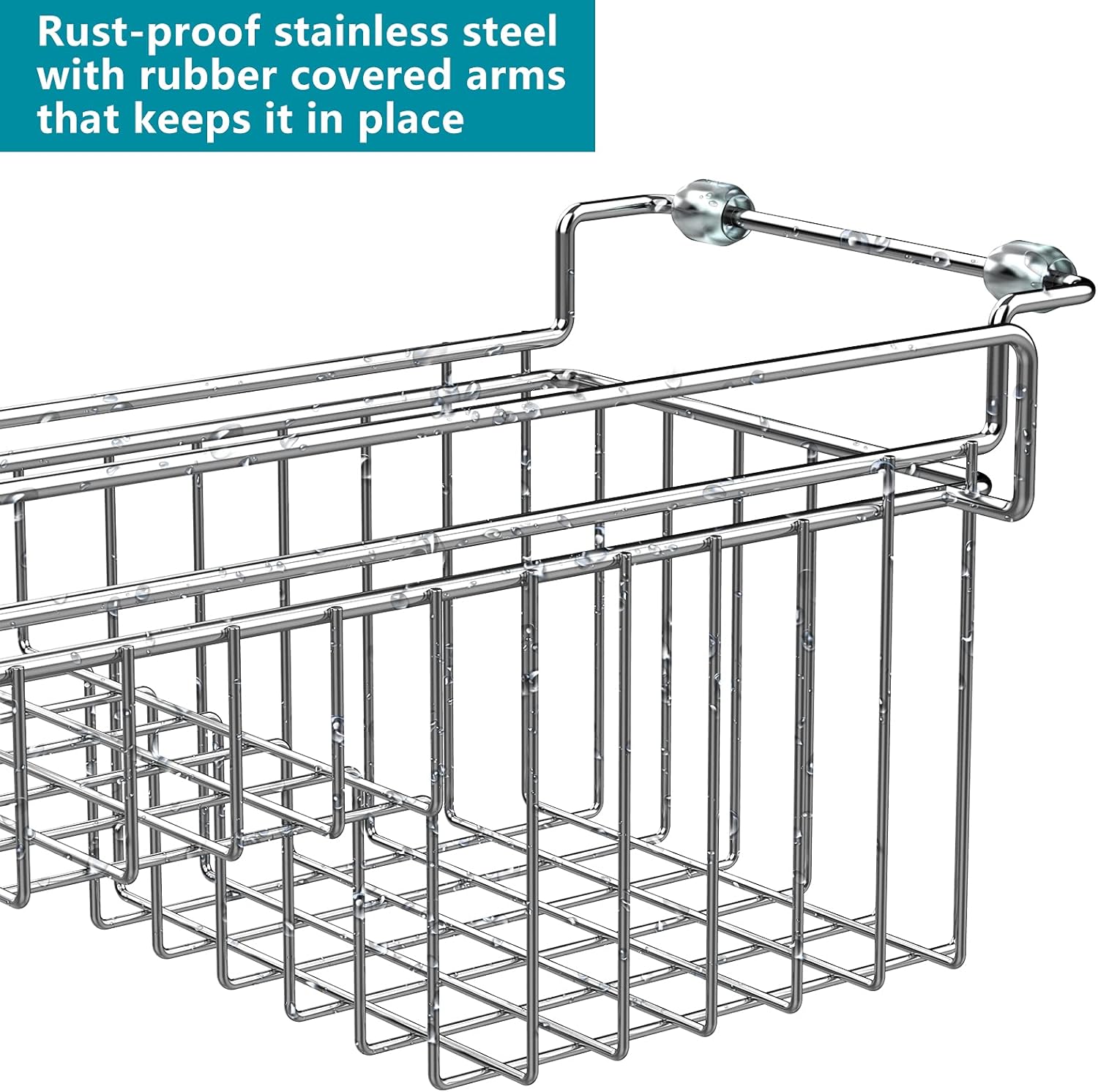 Over The Kitchen Sink Caddy Sponge Holder Organizer Drying Rack Expandable for Sponge Brush Soap Dish Cloth Rag, Stainless Steel (12.25" to 17.25")
