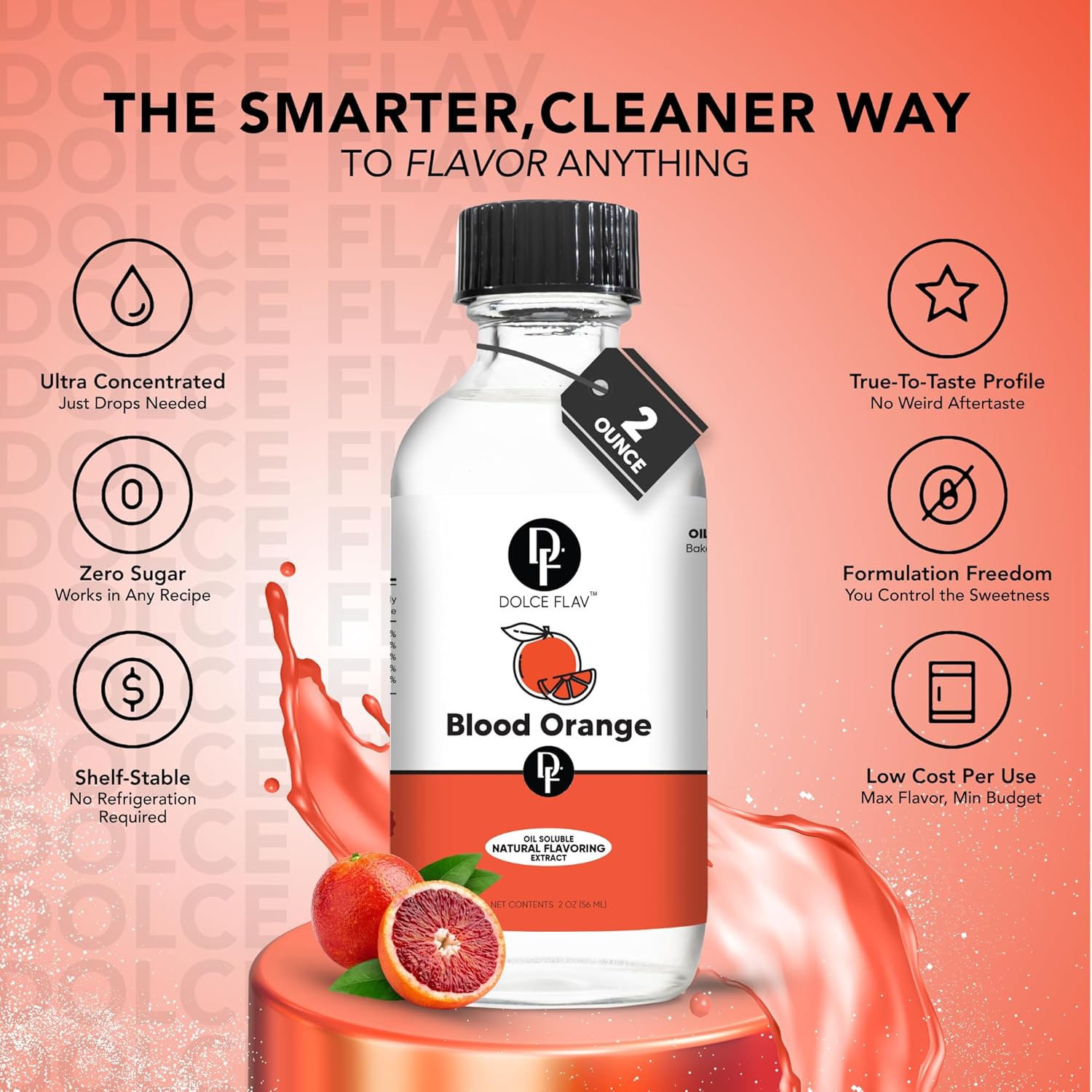 Dolce Flav Natural Blood Orange Extract – 2 Ounce Oil-Soluble Kosher, Sugar-Free, Concentrated Rich Citrus Flavoring for Baking, Chocolates & Desserts, Includes Measured Dropper