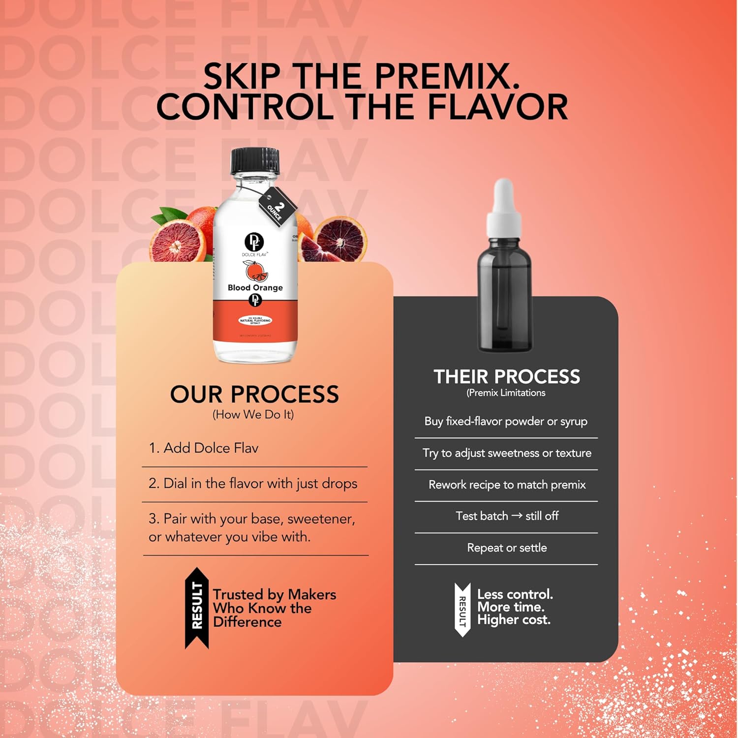 - Commitment to Authentic Flavor: Our blood orange flavoring, free from alcohol, sugar, and dyes, and proudly crafted in the USA, is a crucial addition to your flavor toolkit. Whether you're preparing citrus-infused baked goods, vibrant dressings, refreshing popsicles, or innovative cocktail mixers, we're dedicated to enhancing your culinary ventures with our premium blood orange extract.