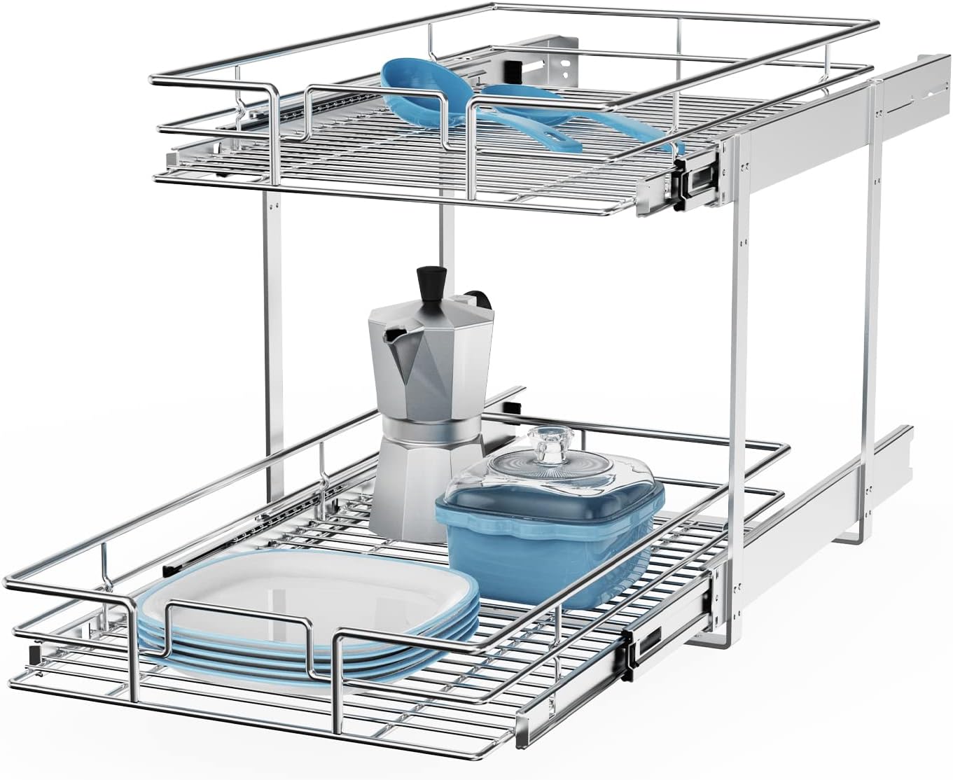 - ăSpace-saving Pull Out Cabinet OrganizerăThis slide out cabinet organizer can maximize your cabinet space. Makes it super easy to store, organize, and access your stand mixers, pots, pans, baking sheets and other kitchen accessories, cleaning supplies, and various odds and ends. Now your cabinet is no longer just stacks of potspans.
