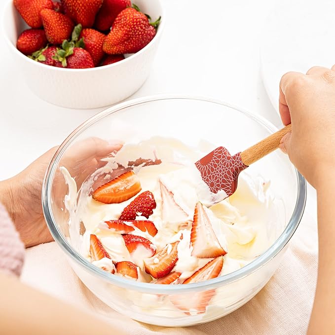 Silicone Spatula set of 2 with wooden handle and stunning pattern (Red)