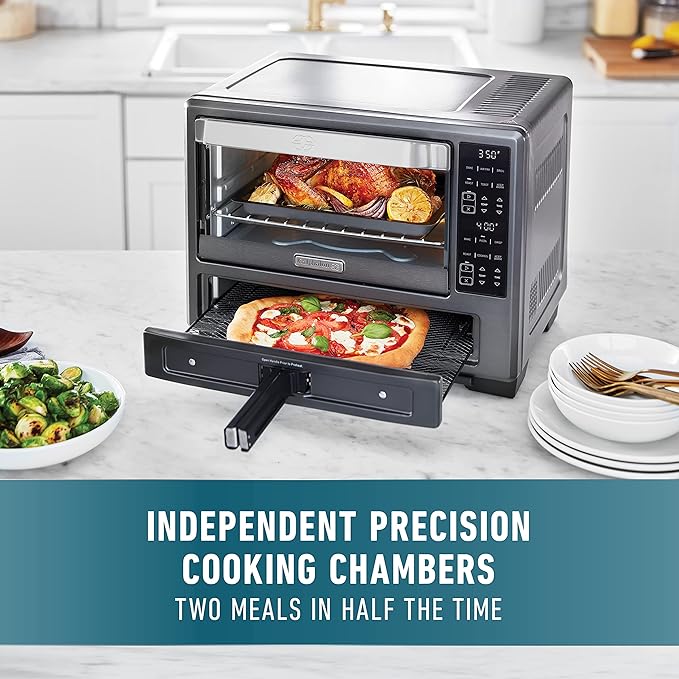 Calphalon Performance 12-in-1 Air Fry Toaster Oven with Dual Zone 12" Pizza Drawer Oven combo,Digital Precision Controls, Dark Stainless