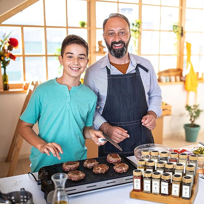 - Durable and Convenient Square Spice Jars: Our glass spice jars are made of lead-free material, which is food-safe-grade and can be used with confidence. Meanwhile, we have increased the thickness of the glass in these clear spice jars to prevent breakage. The spice jar is large in capacity but light in weight, and because it is a square spice container it will not roll easily, making the spice jars with labels safe and easy to put in drawers, spice racks, Pantry, and Cupboard.
