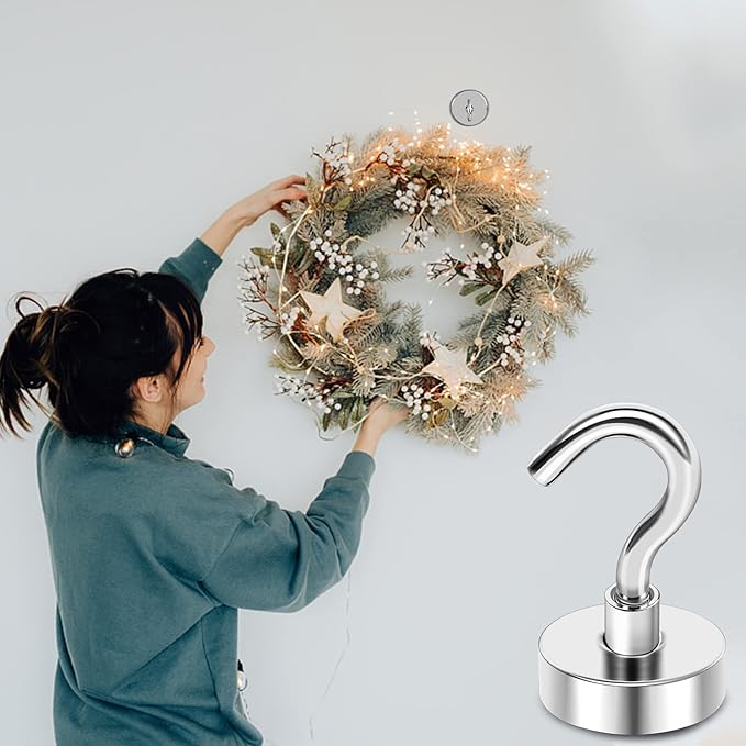 - 【Premium Magnetic Hooks】- Ni+Cu+Ni Triple Layer nickel coating greatly reinforces corrosion resistance. The best coating available, which provides a shiny and rust resistant coated steel cup provides protection for the strong metal magnetic hooks and helps to prevent chipping or cracking, Safe to Use!
