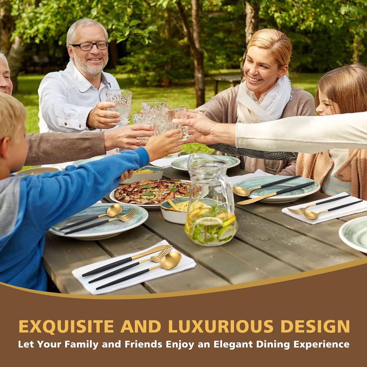 - DISHWASHER SAFE :This black gold silverware is easy to clean and dishwasher safe.Your good care can make the knives,forks and spoons silverware still look as same as new
