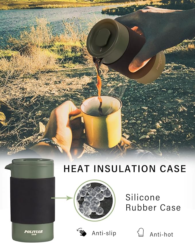 - BREW FRESH COFFEE ANYTIME AND ANYWHERE - Different form normal portable french press, POLIVIAR french press comes with a coffee grounds canister and an exquisite collection bag that it is light and convenient for coffee lover to carry out. The 12 oz capacity is perfect for 1 cup coffee that user can brew rich and fresh coffee anytime and anywhere they want.