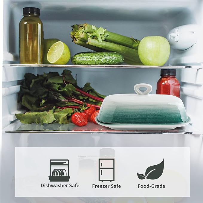 - A BEAUTIFUL PRESENT:Our butter container with a fantastic appearance will be a housewarming present for your lovers at Christmas, Thanksgiving, wedding and New Year. The ceramic butter dish can also blend into your home and kitchen. Give your stick of butter a nice home with our porcelain butter holder.