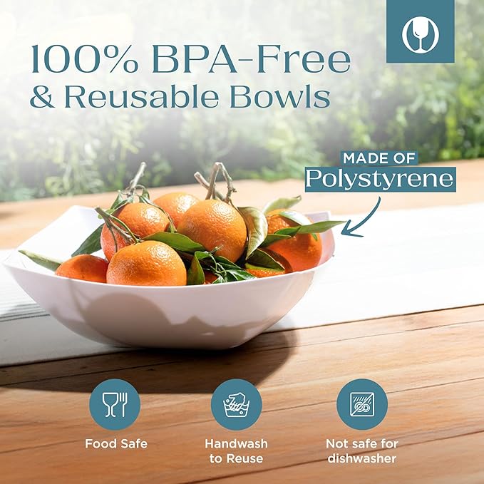- DISPOSABLE OR REUSABLE: These thanksgiving plastic serving bowls offer great versatility—easy disposal or reuse. They are 100% reusable and can be hand-washed for multiple uses. This feature not only makes party cleanup a breeze but also supports responsible practices, giving you flexibility and convenience. Ideal for outdoor serving dishes, plastic bowls reusable, white bowls, candy jar, and acrylic bowls.