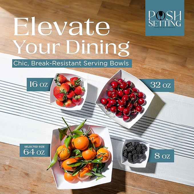 - MULTIPURPOSE USE: These 64 oz white plastic serving bowls are great for any occasion. Whether you're hosting a salad bar, serving snacks, candies, chips, or even using them for arts and crafts, these thanksgiving serving bowls meets all your needs. Enhance your party setup with these practical and stylish bowls that fit seamlessly into any event. Use them as candy dishes, chip bowls for parties, white plastic bowls, taco bar serving set for a party, and party bowls.