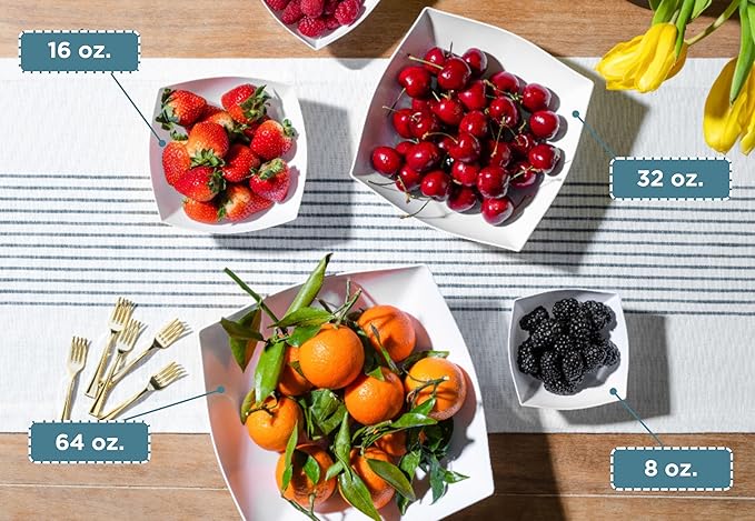 - MULTIPURPOSE USE: These 32 oz white plastic serving bowls are great for any occasion. Whether you're hosting a salad bar, serving snacks, candies, chips, or even using them for arts and crafts, these thanksgiving serving bowls meets all your needs. Enhance your party setup with these practical and stylish bowls that fit seamlessly into any event. Use them as candy dishes, chip bowls for parties, white plastic bowls, taco bar serving set for a party, and party bowls.