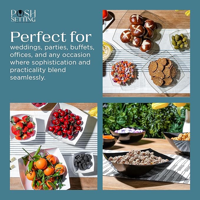 - HEAVY-DUTY, BPA-FREE CONSTRUCTION: Made from durable, food-grade plastic, these bowls are lightweight yet strong. They ensure your food is secure and healthy, providing peace of mind. Ideal for the kitchen, dining room, or any event, these bowls can handle both hot and cold foods without breaking or bending. Great as candy dishes for candy buffet, candy bowls for candy buffet, candy dish for office desk, plastic candy jars for candy buffet, and candy bowl for office.