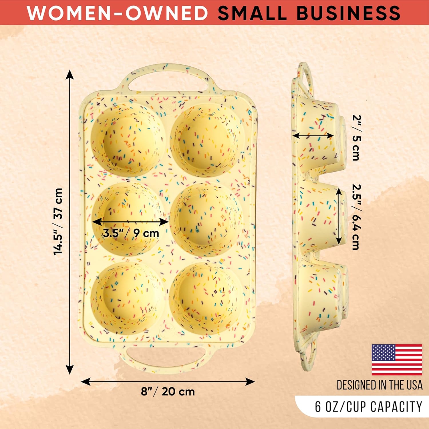 Confetti Silicone Jumbo Muffin Pan 6 Cup–Non-Stick Cupcake Pans for Baking, Heavy-Duty Large Silicone Muffin Pans for Baking, BPA-Free, Easy-Release, Oven & Dishwasher Safe