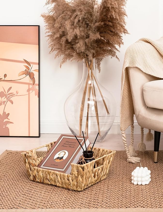 StorageWorks Wicker Basket for Pantry Organizers and Storage, Stackable Water Hyacinth Storage Baskets for Pantry Shelves, 2-Pack