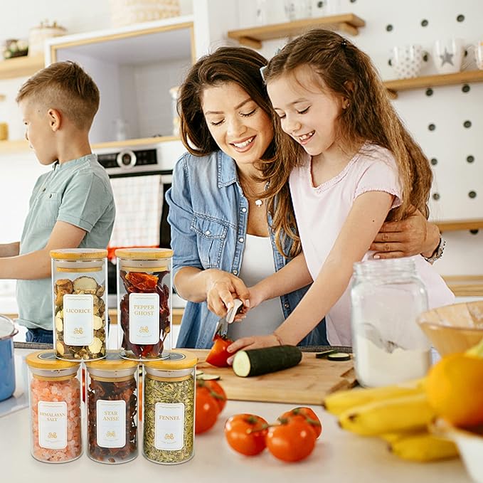 - 【Cute Bamboo Spice Jars Set】Get 30 durable 6 oz seasoning jars with 426 waterproof labels, a funnel, spoon, brush, and 2 pens. These small spice storage containers with labels and lids aren’t just containers—they’re tiny stylists, turning clutter into tidy charm.