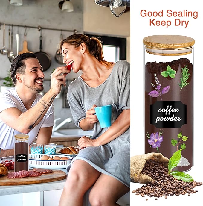 - 【Effortless Organization】Stay perfectly organized with 58 colorful labels included with these kitchen jars. The uniform airtight glass pantry storage containers set with bamboo lids stack neatly to maximize space - ideal for small kitchens storing flour, nuts or pet treats.