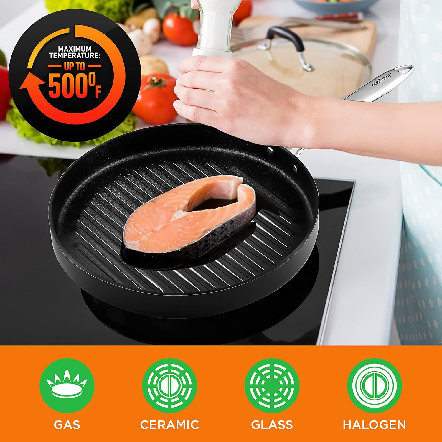 NutriChef Anodized Non-Stick Grill - Dishwasher Safe Nonstick Grill Pan Heavy Gauge Aluminum Body with Hard Anodized Surface for Even Heating, Max Temperature: 500° Fahrenheit (260° Celsius)