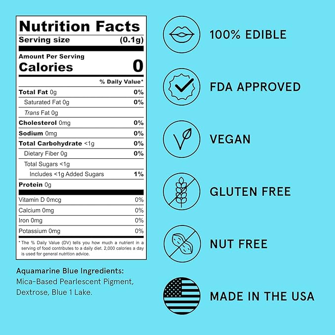 Fancy Sprinkles Aquamarine Blue Premium Edible Glitter, 100% Edible Glitter for Sparkling Food & Drinks No Taste or Texture (4gm)