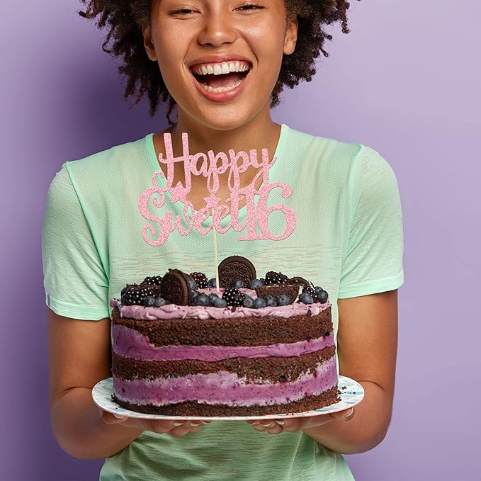 - 💕💕This Happy Sweet 16 Cake Topper is so cute and good for 16th birthday party, 16th anniversary party cupcake decorations. They can make your cupcake more attractive and bring the fun to your party. You can also apply them for ice cream, fruits, cookies and other desserts.