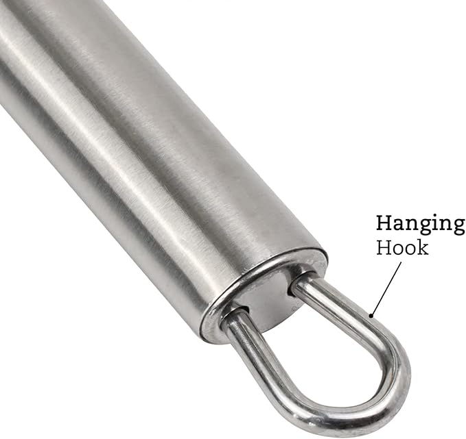 - STAINLESS STEEL HANDLE: Sturdy handle made of durable, corrosion resistant stainless steel that won’t rust so you can count on it to last; Comes with handy slot in handle for easy hang storage if preferred; Trendy cream color will fit nicely with any kitchen decor
