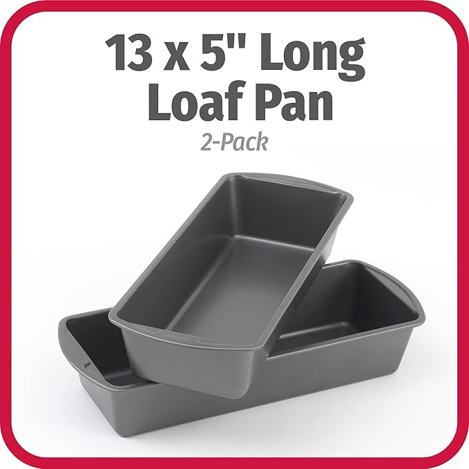 - SET OF TWO 13" x 5" LOAF PANS: Great for baking meatloaf, sweet or savory breads, thick cakes or brownies, smaller portions of lasagnas or casseroles, and more for the perfect bake every time