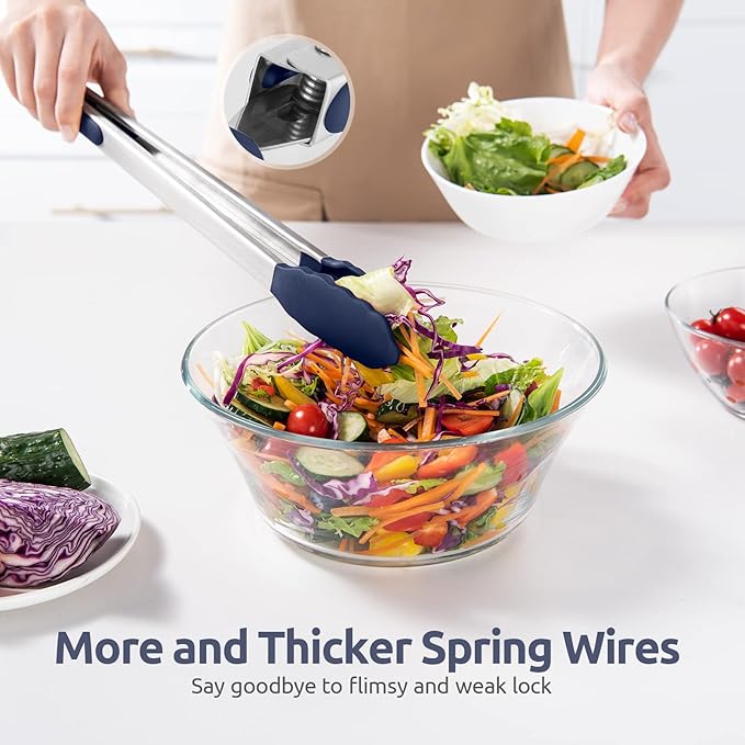 - [Heat Resistant Silicone Tips without Melting & Odor] The silicone tipped tongs are made of Food Grade silicone, which is more Sturdy and has higher heat resistance (up to 600℉) than the basic. The silicone tips make them a great partner for your nonstick pans and pots. No more sharp tips to scratch or ruin your cookware. They are heat resistant, so no more silicone parts of the tongs melt off with heat again! Thanks to fine workmanship, the silicone tips firmly sealed on never lose its grip.