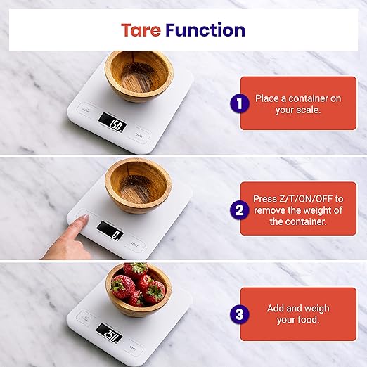 - Tare Function: Remove the weight of any container to get more precise results