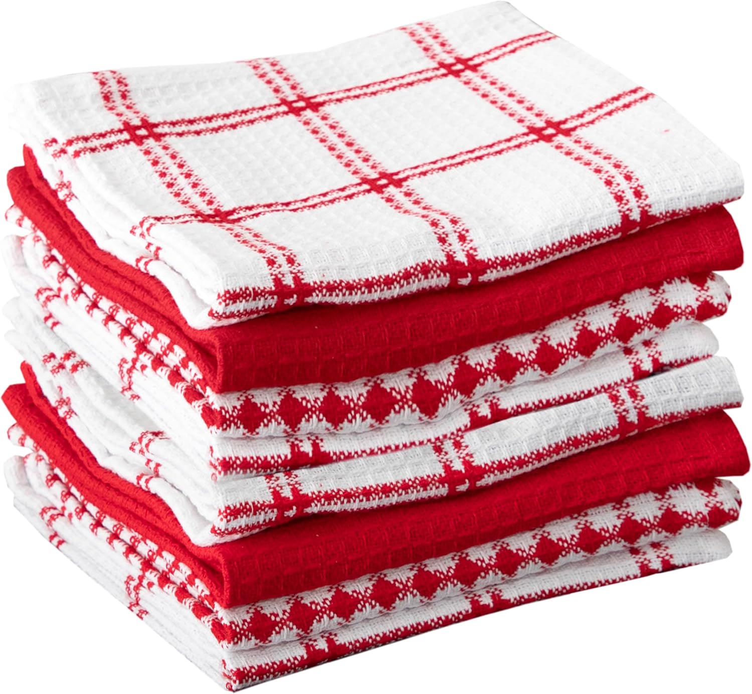 T-fal Premium Waffle Dish Cloths: Highly Absorbent, Super Soft Long Lasting - 100% Cotton, 12"x13" Towel for Cleaning & Drying, (8-Pack), Red