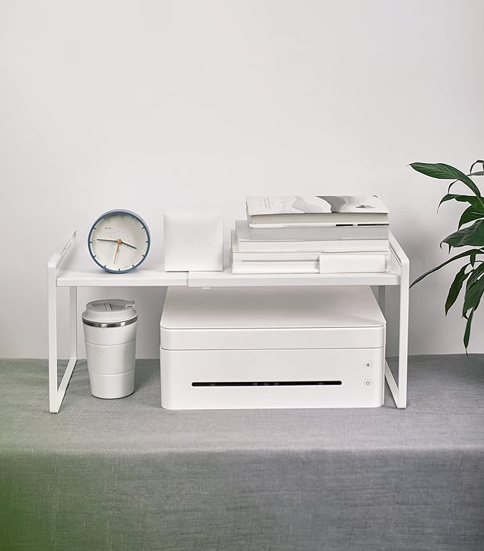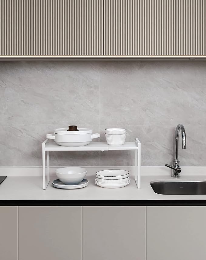 Nxconsu Expandable Cabinet Shelf Organizer Riser for Kitchen Pantry Cupboard Under Sink Countertop Home Storage Organization Rack Space Saver Freestanding Heavy Duty Nonslip Stackable White