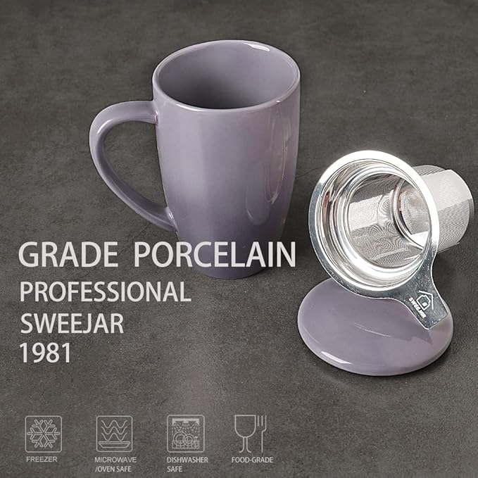 - Durable Material—Sweejar cup is made of reliable porcelain which is breakage-proof. The tea infuser is 18/8 stainless steel. The lid can be used as a tray for the infuser.Ceramic cups is safe for and dishwasher easy to clean.
