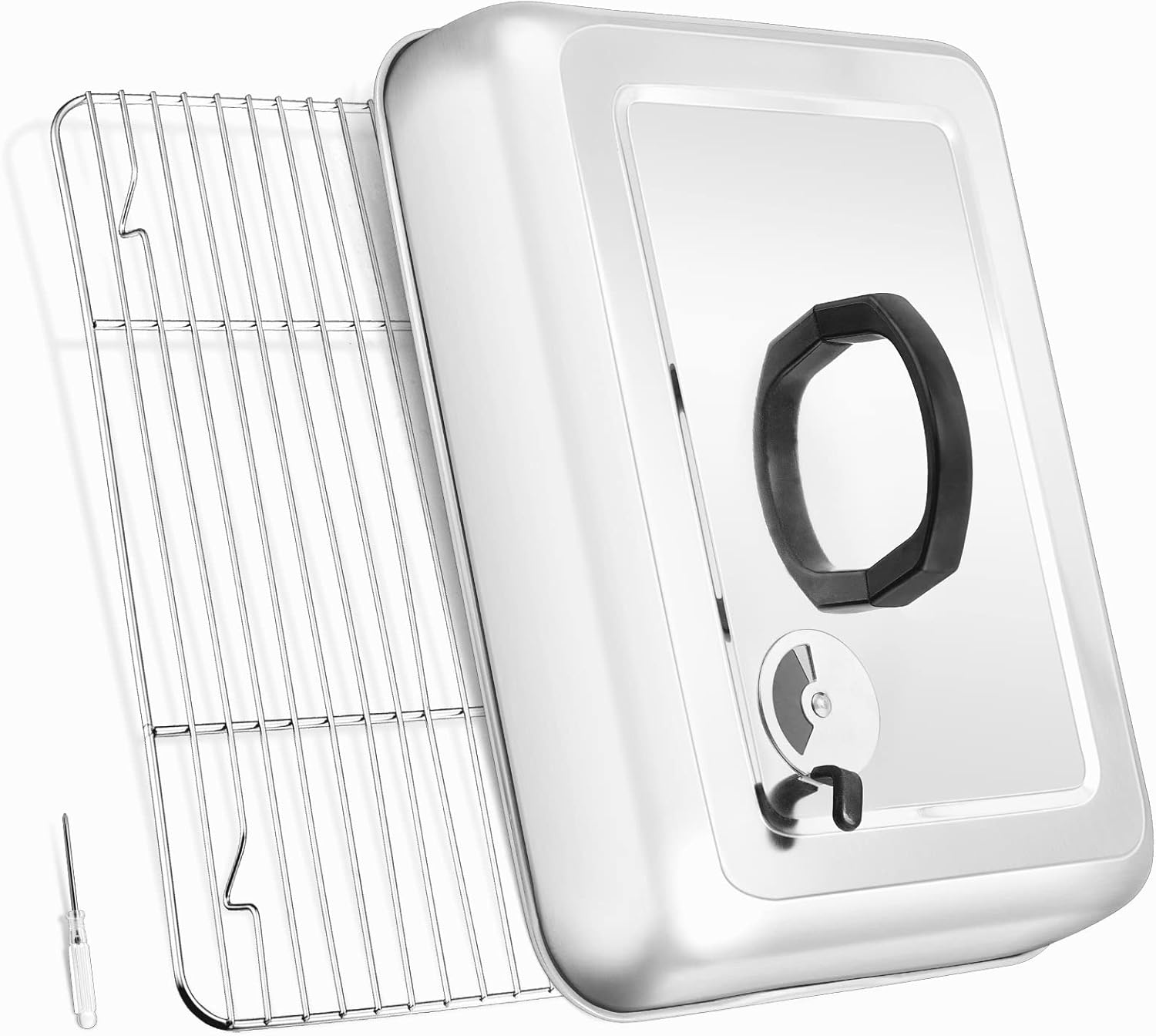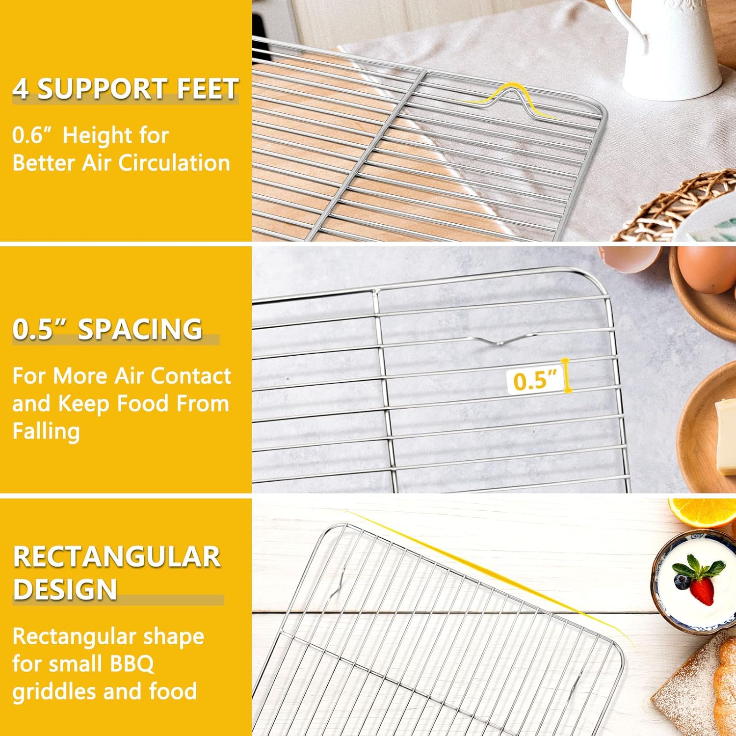- Commercial Stainless Steel, 13" x 9.8" large basting cover for griddle and 11" x 9" cooling racks for cooking and baking are made of food-grade stainless steel, no plating, no coating heavy duty enough to provide a stable solid construction to achieve long term usage, easy to clean with soap and water, dishwasher safe