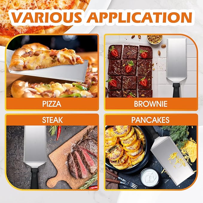 - Wide Applications: this small square spatula can be applied as a cheese spatula, steak frying spatula, cake spatula; Suitable for cookies, brownies, hamburgers, fish, eggs, pancakes, pizza , pie and more