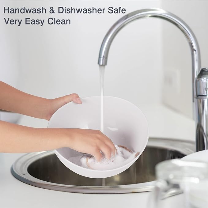 - Easy to Clean & Stackable: The large serving bowls are very easy to clean,won't leave food residue, hold odors, or leave color stains behind. Support hand wash& dishwasher& freezer. Our modern curve shaped serving bowls can stack well and take up little space in the kitchen.