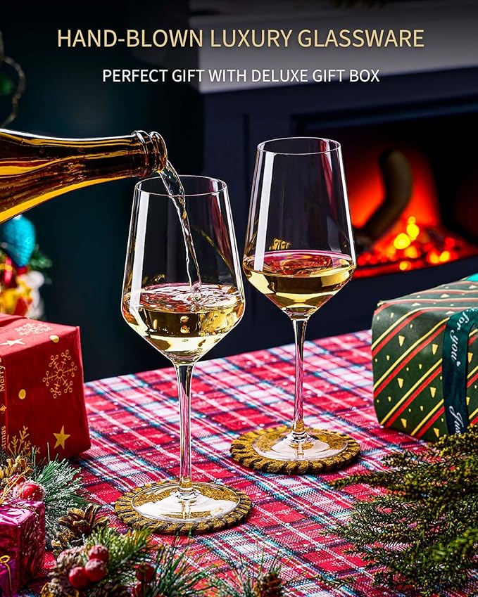 - GIFT-BOX: The stylish and modern packaging of the wine glasses set of 6 is perfect for giving as a g-ift to others. The high-quality pearl cotton lining ensures safety during transportation. Our after-sales service is thoughtful and meticulous. If you receive the broken universal wine glasses and the glass is damaged for any reason within 30 days, please contact us