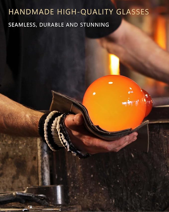 - HAND AND BLOWN: Each JBHO modern wine glass is meticulously crafted by three master glassblowers with over 10 years of experience and undergoes 25 intricate steps in the production process, including 5 manual polishing steps. The red wine glasses have excellent flow linearity and features seamless joints between the stem and bowl. Each piece contains the unique skills and exquisite craftsmanship of the craftsmen