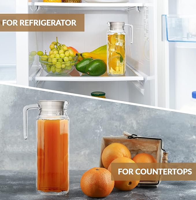 - This set includes 2 x 34oz pitchers perfect for refrigerator or countertops.
