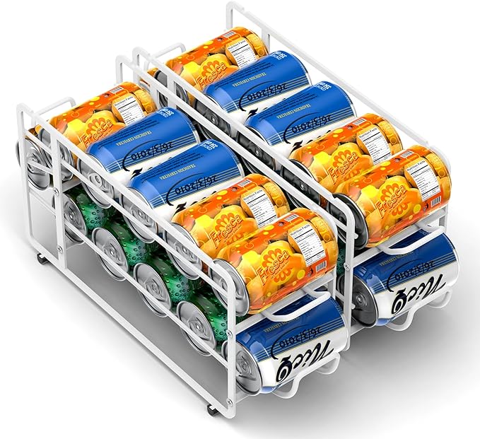 Soda Can Organizer Storage Rack, 2 Pack Stackable Beverage Soda Can Dispenser Organizer Holder for Refrigerator, Cabinet, Pantry (White)