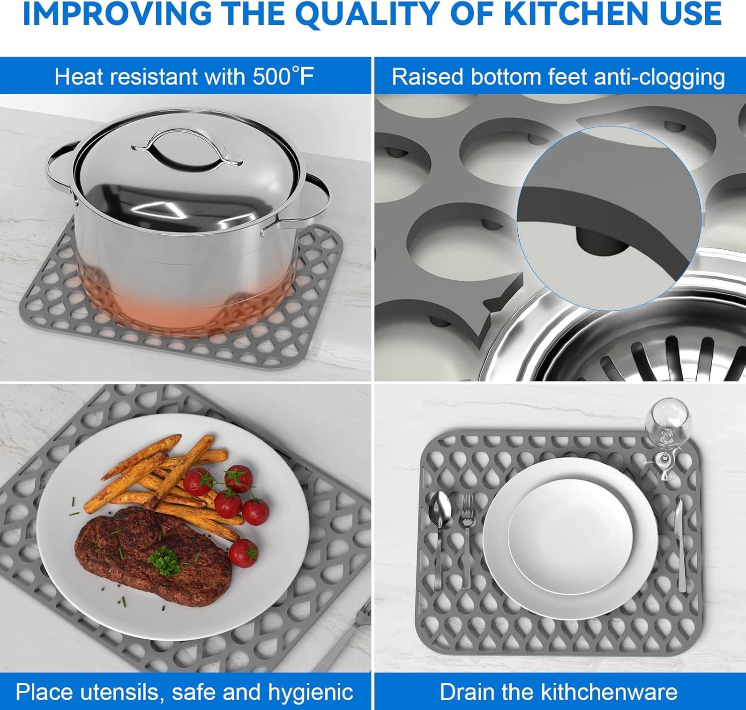 - Multiple Creative Uses: In addition to being a perfect kitchen sink protector, our sink mat for the bottom of the kitchen sink can also be used as a heat-resistant mat for the cooking prep area, a baking sheet mat, a sink mat, or even a pet dish mat. It brings your creative life to life.