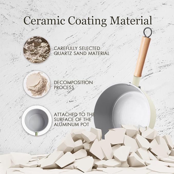 - Utensil Safe: Ceramic small cooking pot is no PFAS, PFOA, LEAD, and cadmium, ensuring your peace of mind while cooking; Healthy sauce pan with steamer made from good quality cast aluminum, induction saucepan for cooking is incredibly sturdy and long- lasting, lasting 5 times longer than regular small milk pots