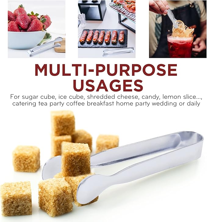 - Multifunctional Usages: These small tongs are suitable for sugar cubes, ice cubes, lemon slices, grated carrots, marshmallows, shredded cheese, jelly cookies, crescent rolls, soft cheese, buffet or pickle slices, etc.