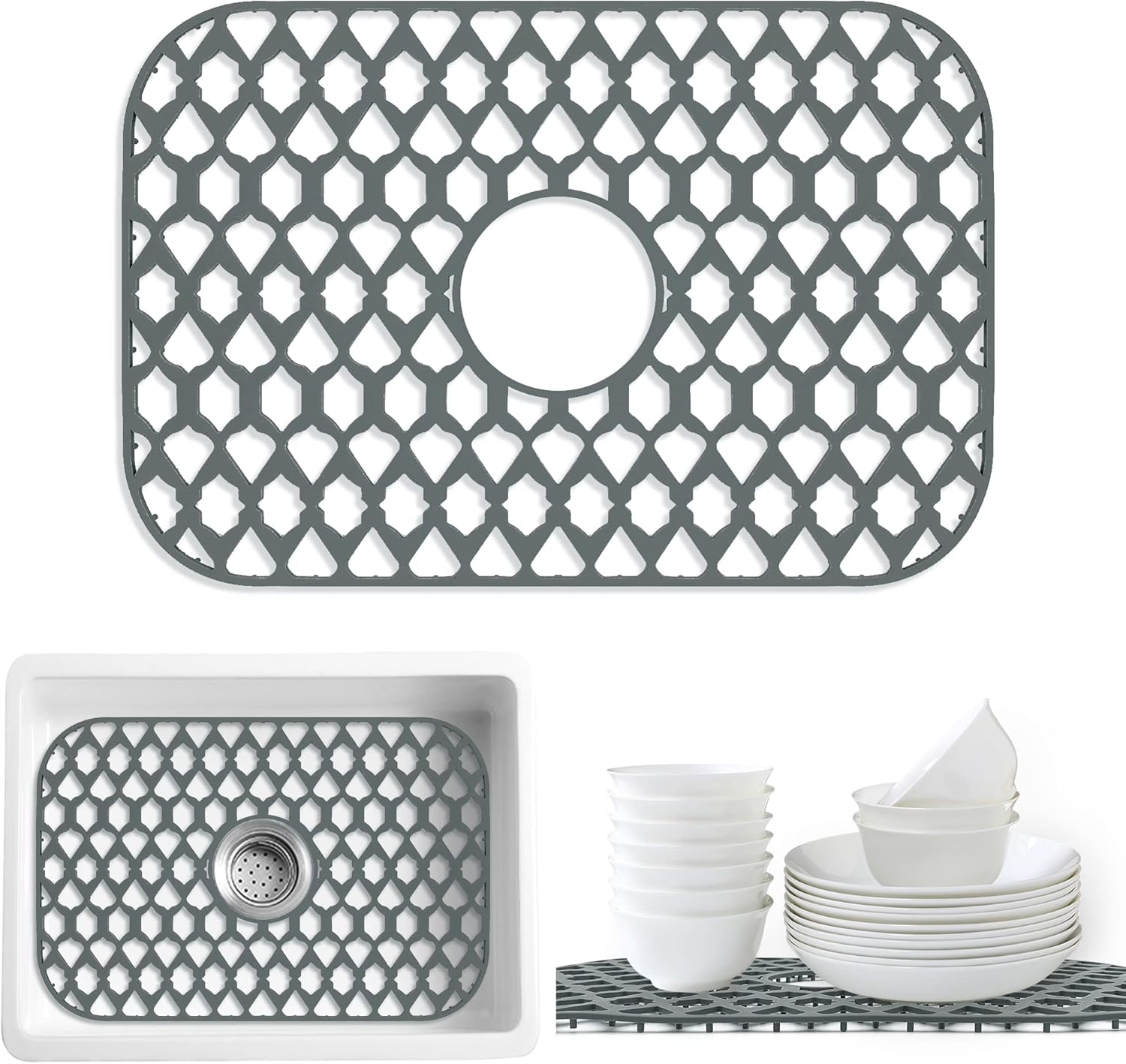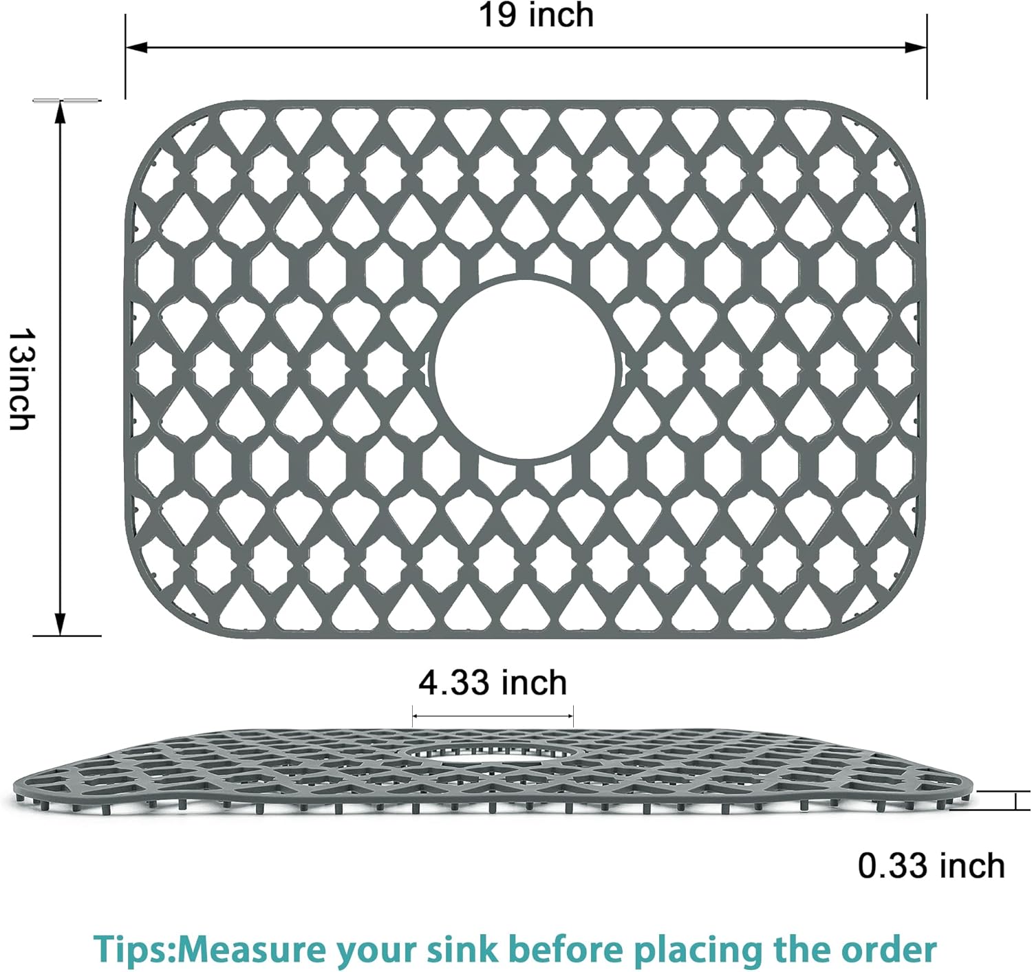 Sink Protectors for Kitchen Sink 13x11 &16x12 &19x14 &22x13 &24x13 &26x14 &28x14 &30x16, Large Silicone Sink Mats Grid for Bottom of Farmhouse Sink (19”x13”, Center Drain)