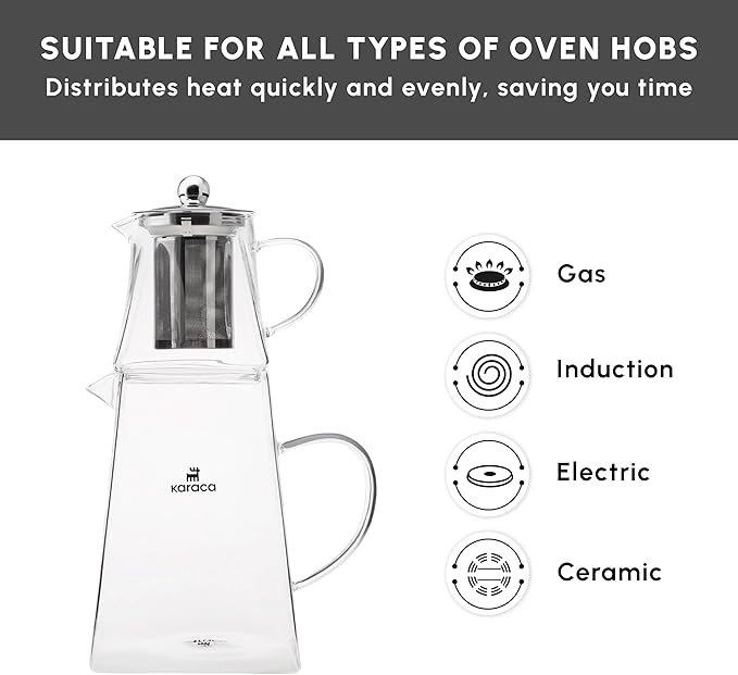 - Elegant & Functional Design: Crafted from borosilicate glass, Karaca Giza tea maker set combines sleek aesthetics with durability for a premium tea experience.