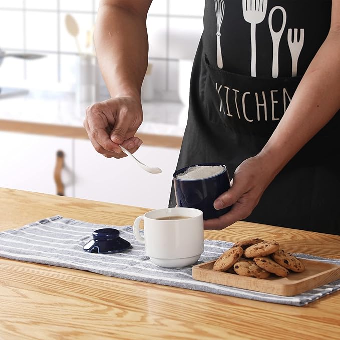 ONTUBE Ceramic Sugar Bowl with Lid and Spoon Set of 2,Porcelain Seasoning Box Salt Bowl with Tray,8oz (Navy)